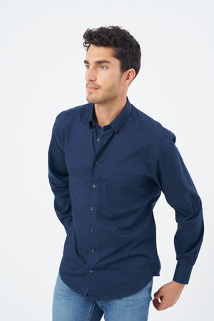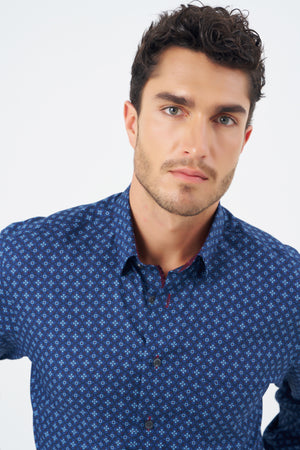 Leo Chevalier Navy Diamond Print Non Iron Shirt