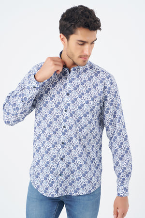 Leo Chevalier Non Iron Blue Thorn Bush Print Shirt
