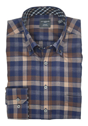 Leo Chevalier Non Iron Blue and Brown Check Shirt