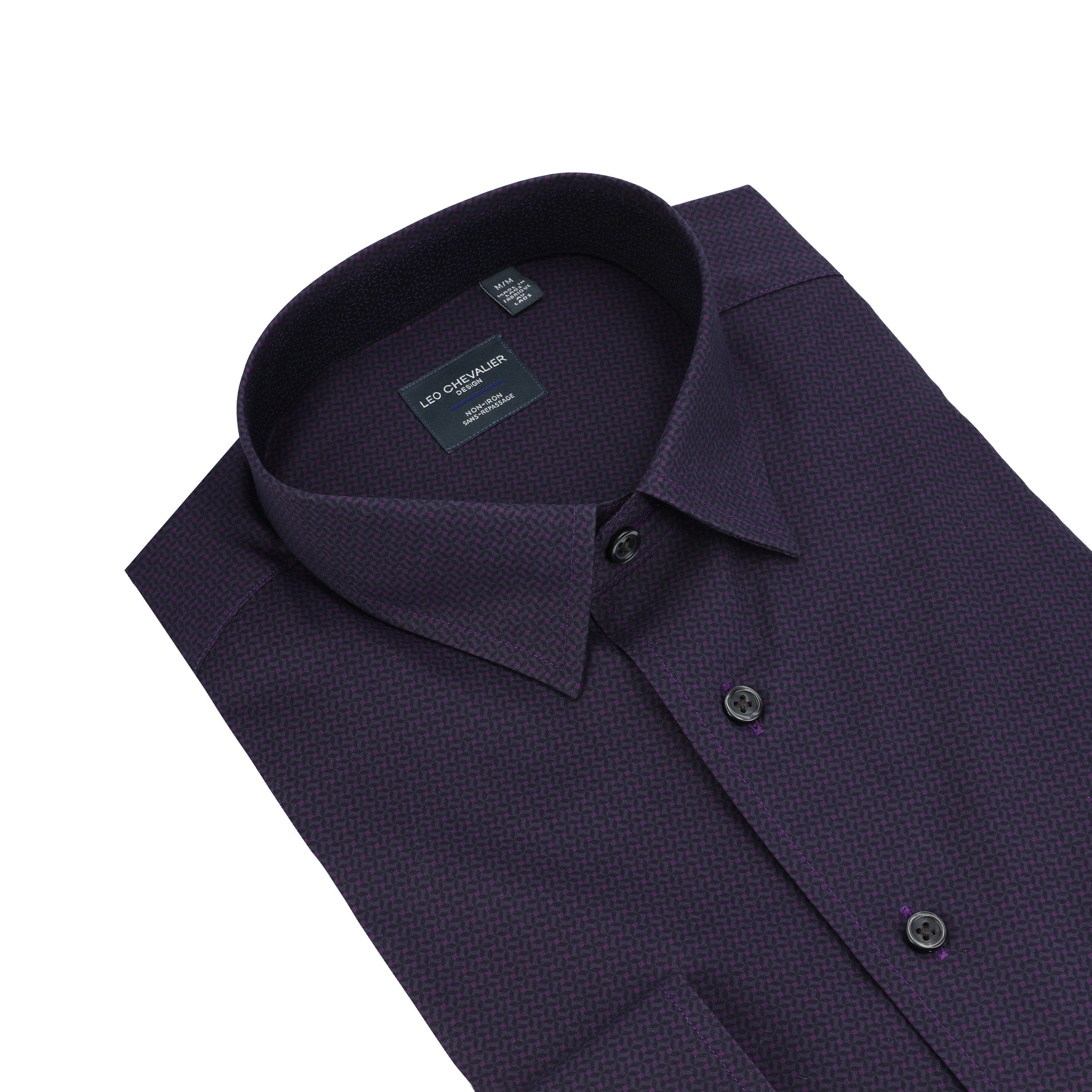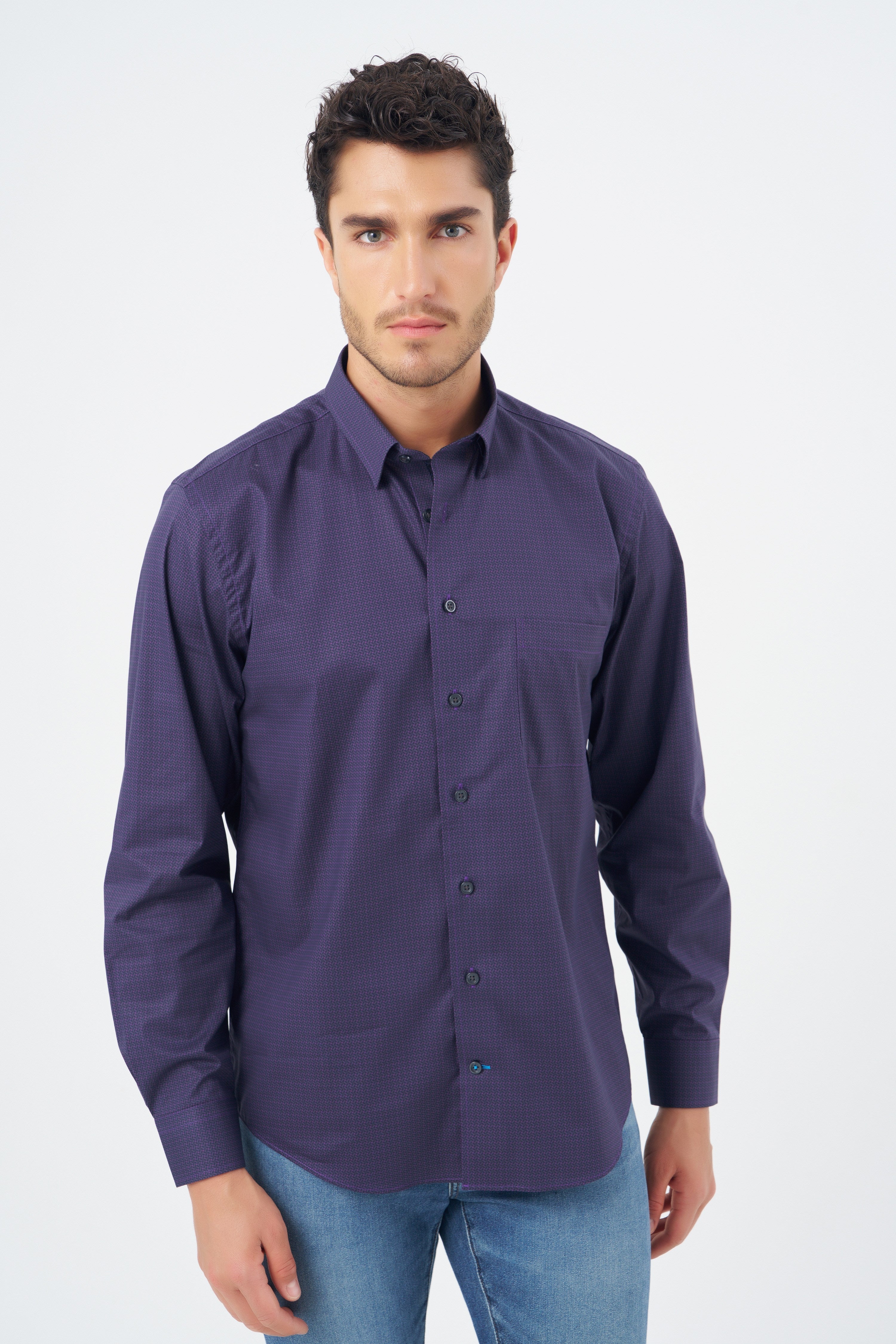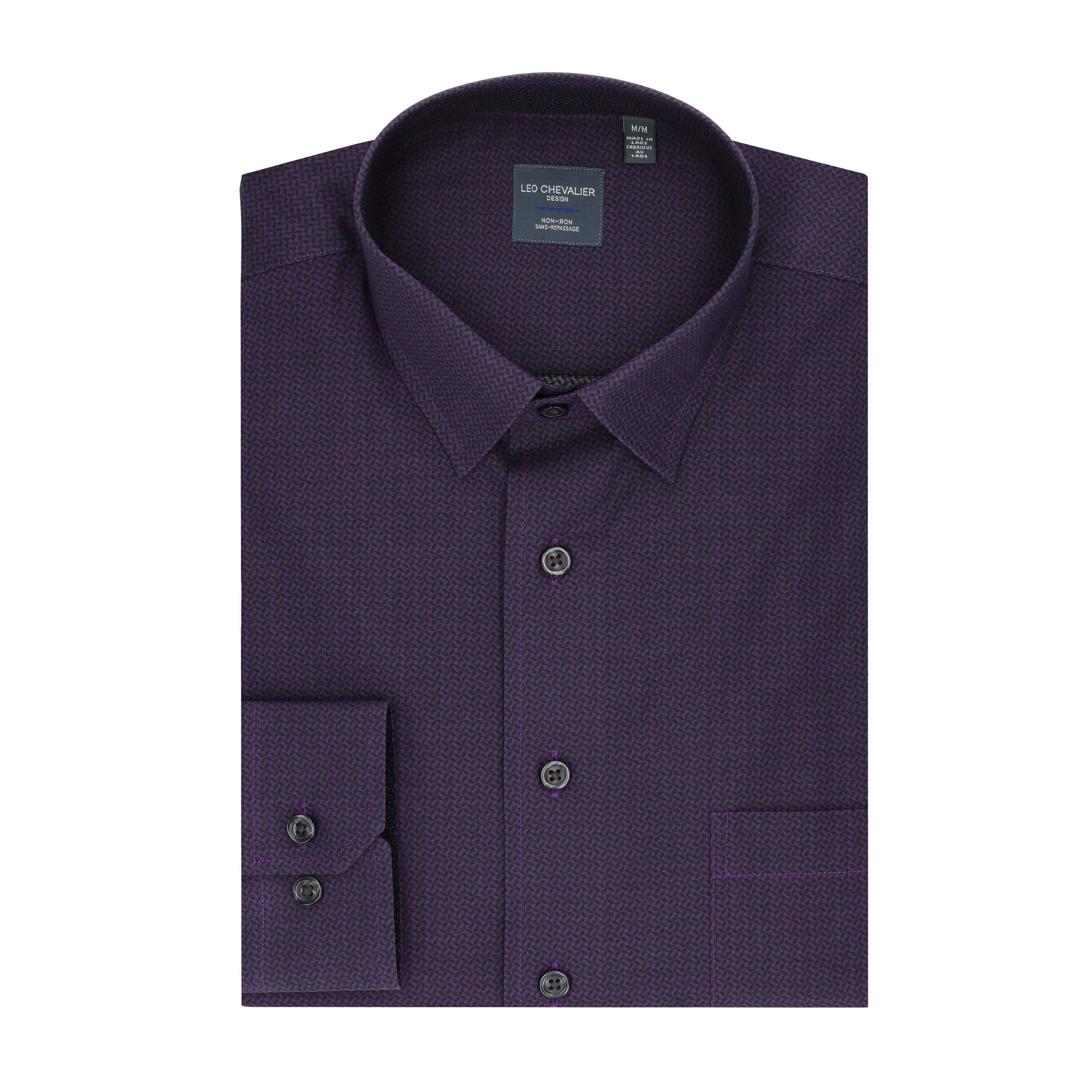Leo Chevalier 100% Cotton Non-Iron Regular Fit Men`s Printed Sport Shirt Hidden Button Down Collar Long Sleeve Contrast trim