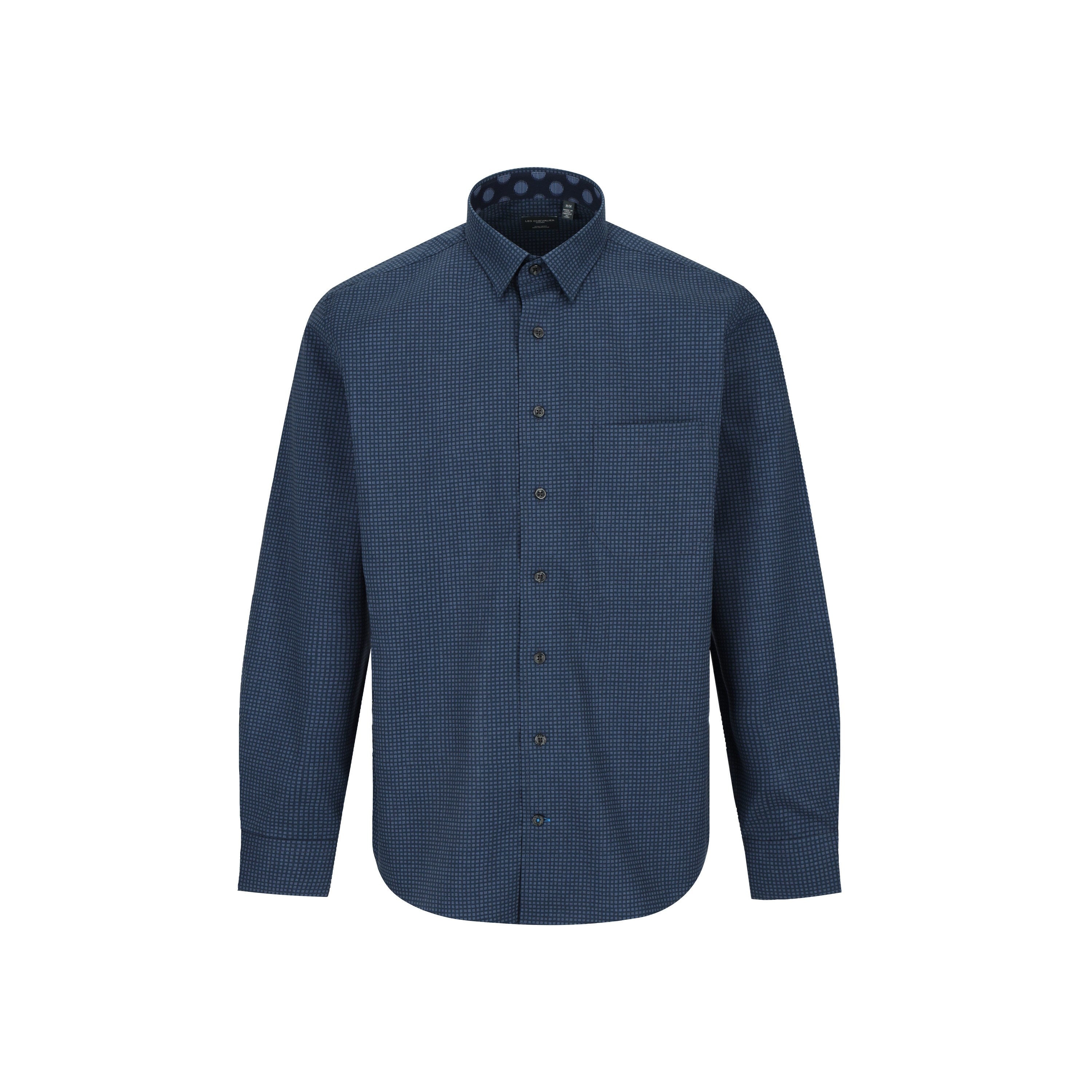 Leo Chevalier Faded Blue Square Print Non Iron Shirt