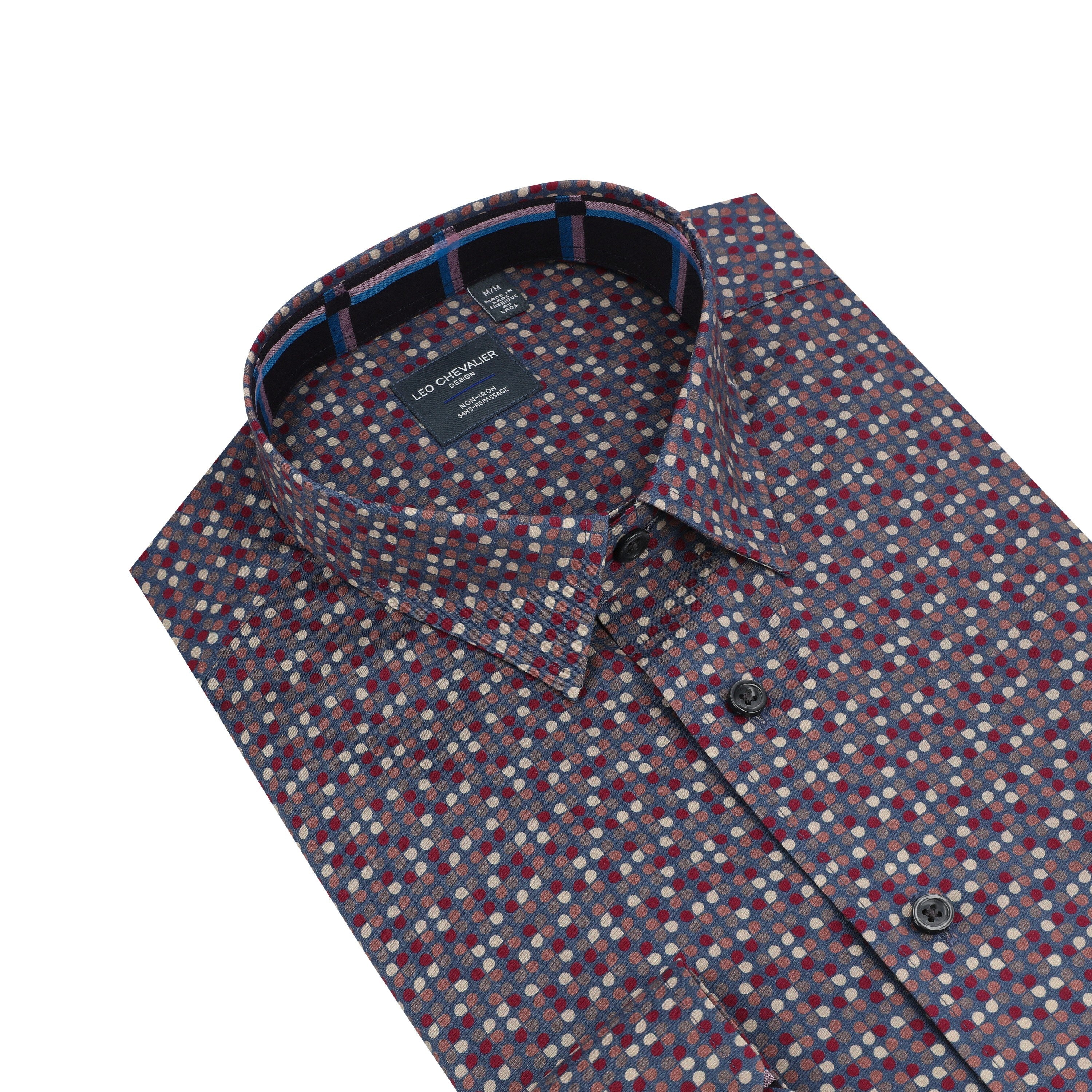 Leo Chevalier Purple Spotted Print Non Iron Shirt