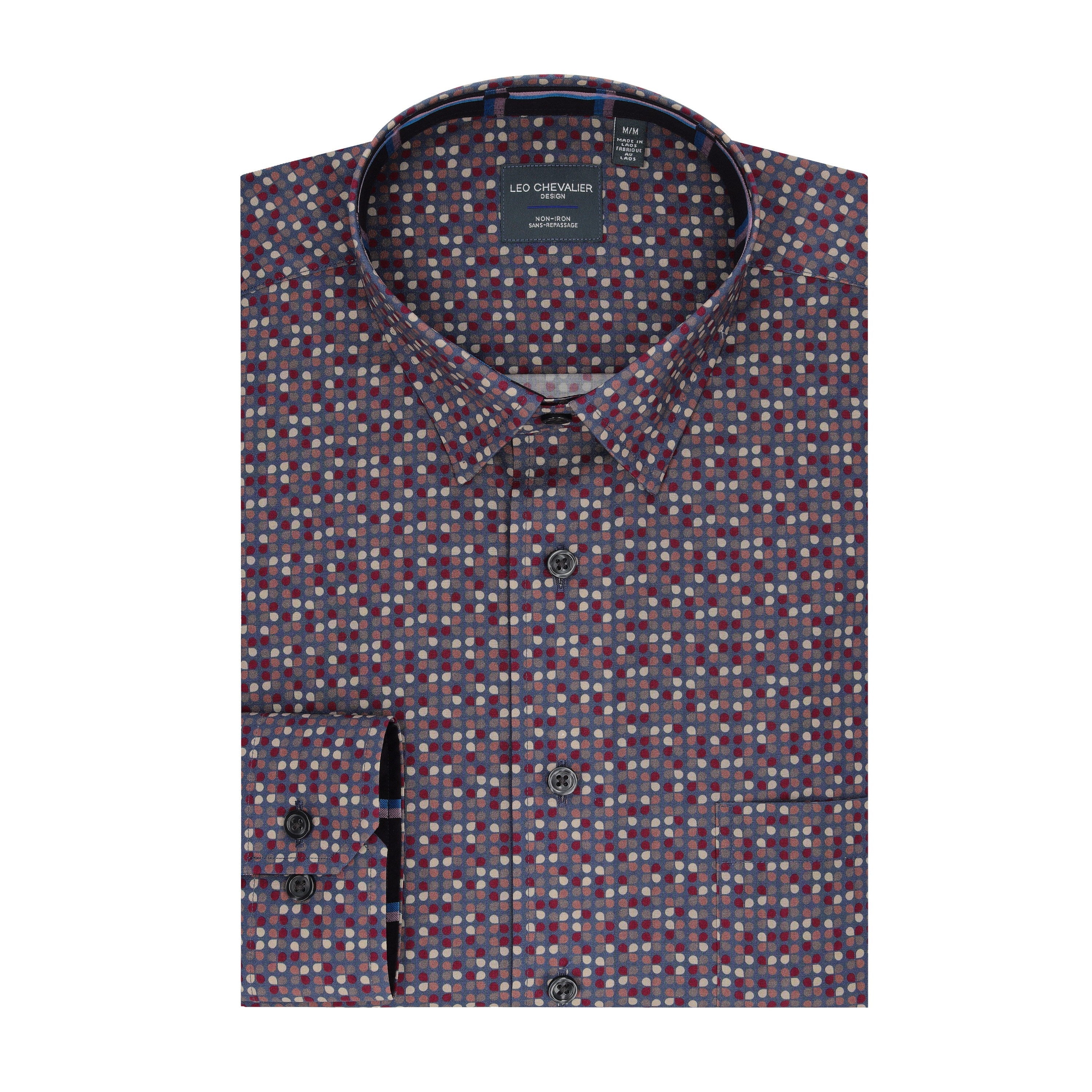Leo Chevalier 100% Cotton Non-Iron Regular Fit Men`s Printed Sport Shirt Hidden Button Down Collar Long Sleeve Contrast trim