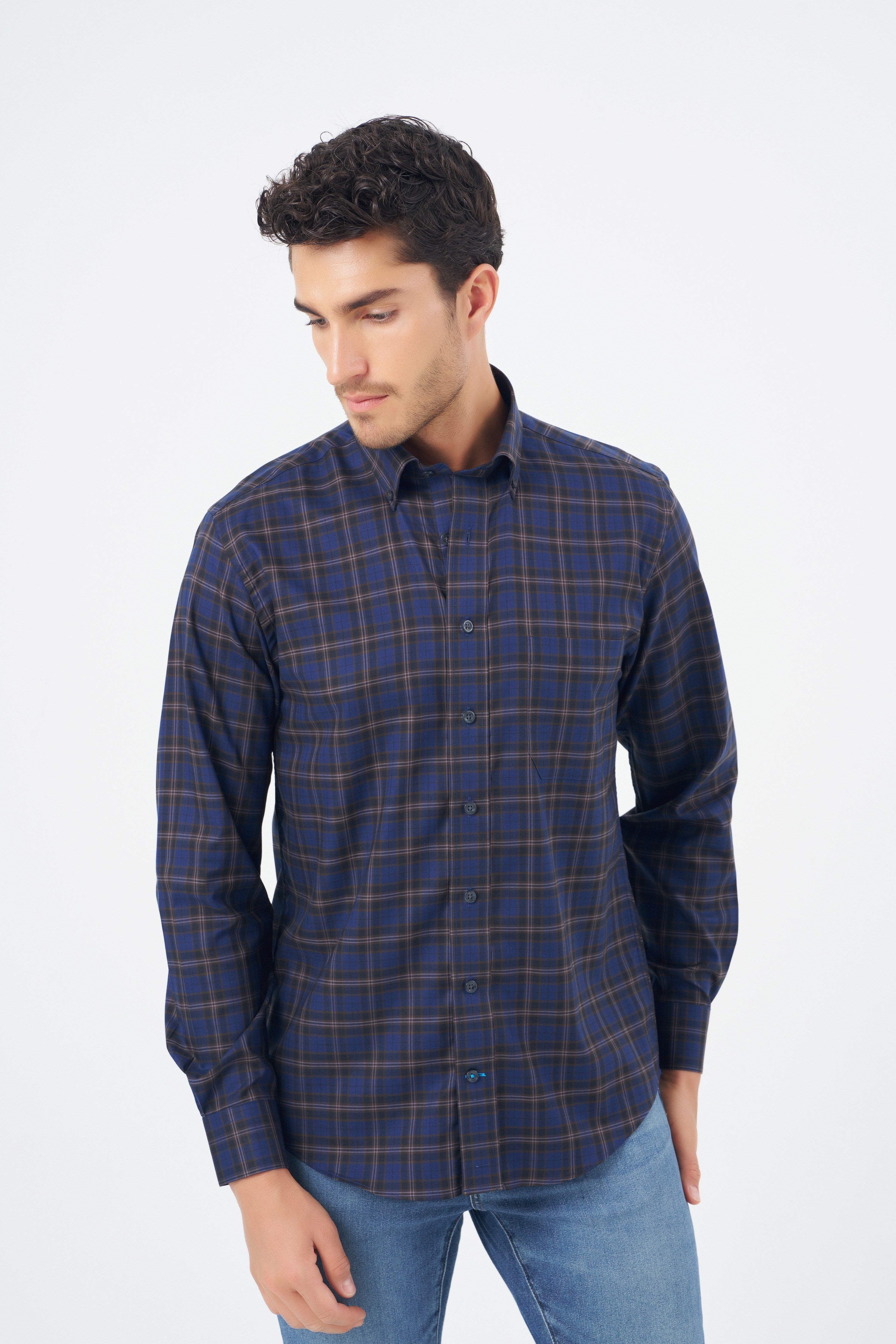 Leo Chevalier 100% Cotton Non-Iron Regular Fit Men`s Printed Sport Shirt Hidden Button Down Collar Long Sleeve Contrast trim