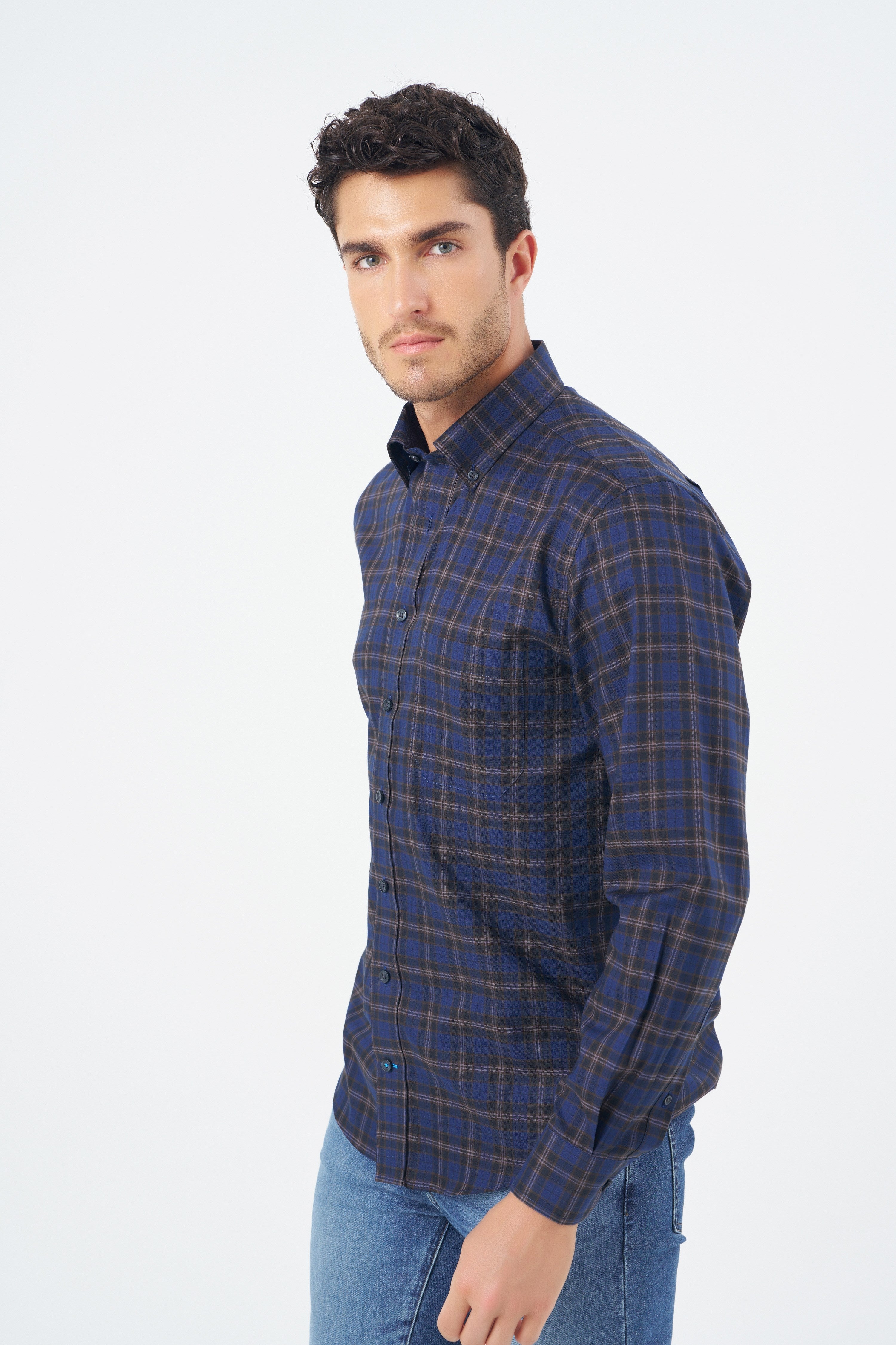 Leo Chevalier 100% Cotton Non Iron Blue Plaid Shirt