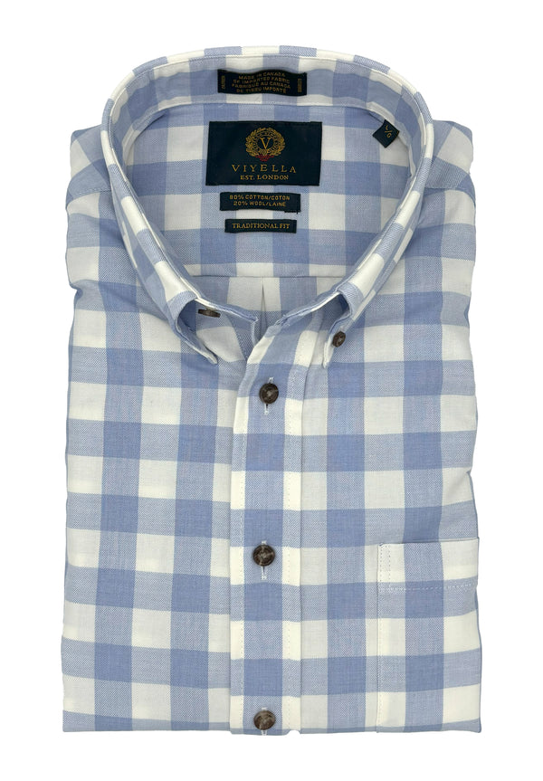 Since 1784, Viyella has manufactured the finest natural fabrics. This long-sleeved check pattern shirt is made in Canada with 80% cotton and 20% Merino Wool, allowing for warmth and breathability. The adjustable cuff, button down collar and chest pocket make this a versatile shirt for any occasion. Traditional Fit