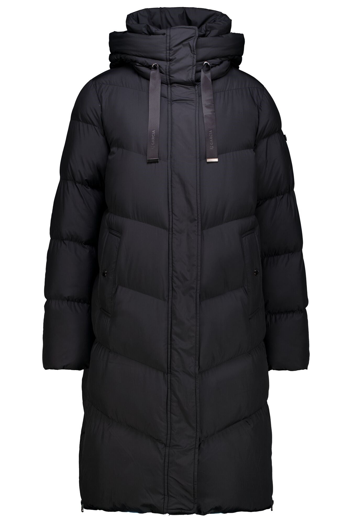 Long padded puffer jacket with a deep hood and high inner collar. This padded coat is made from water-repellent material and lined with a soft filling for comfort and warmth. Additionally, this jacket features long sleeves, a zip closure with an extra windproof flap with snap buttons, side pockets, zip details on the sides for added freedom of movement, and a loose fit. The outer layer of this jacket is made of 100% polyester.