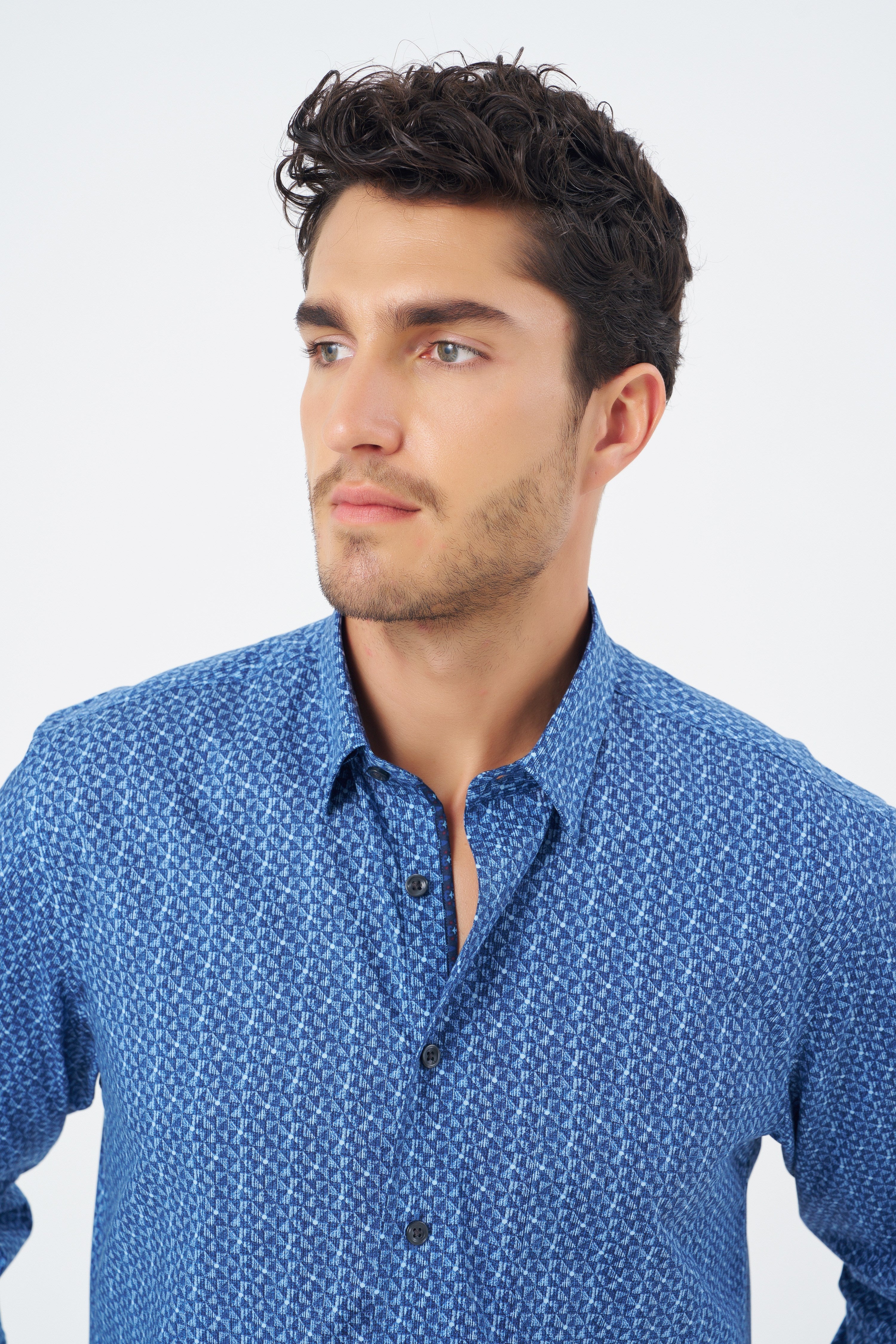 Leo Chevalier 100% Cotton Non-Iron Blue Triangle Print Shirt