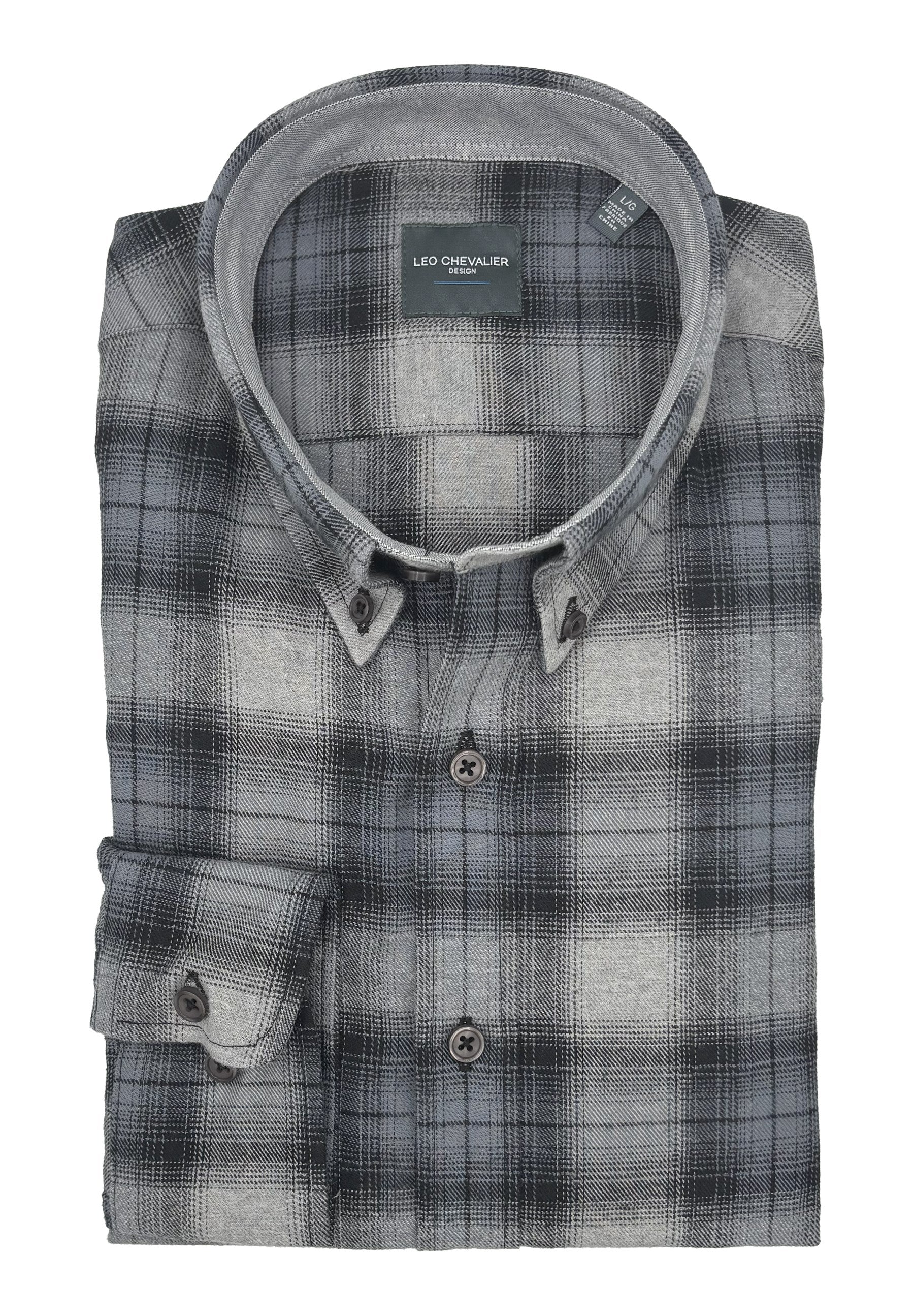 Leo Chevalier Brushed Cotton Grey Plaid Shirt