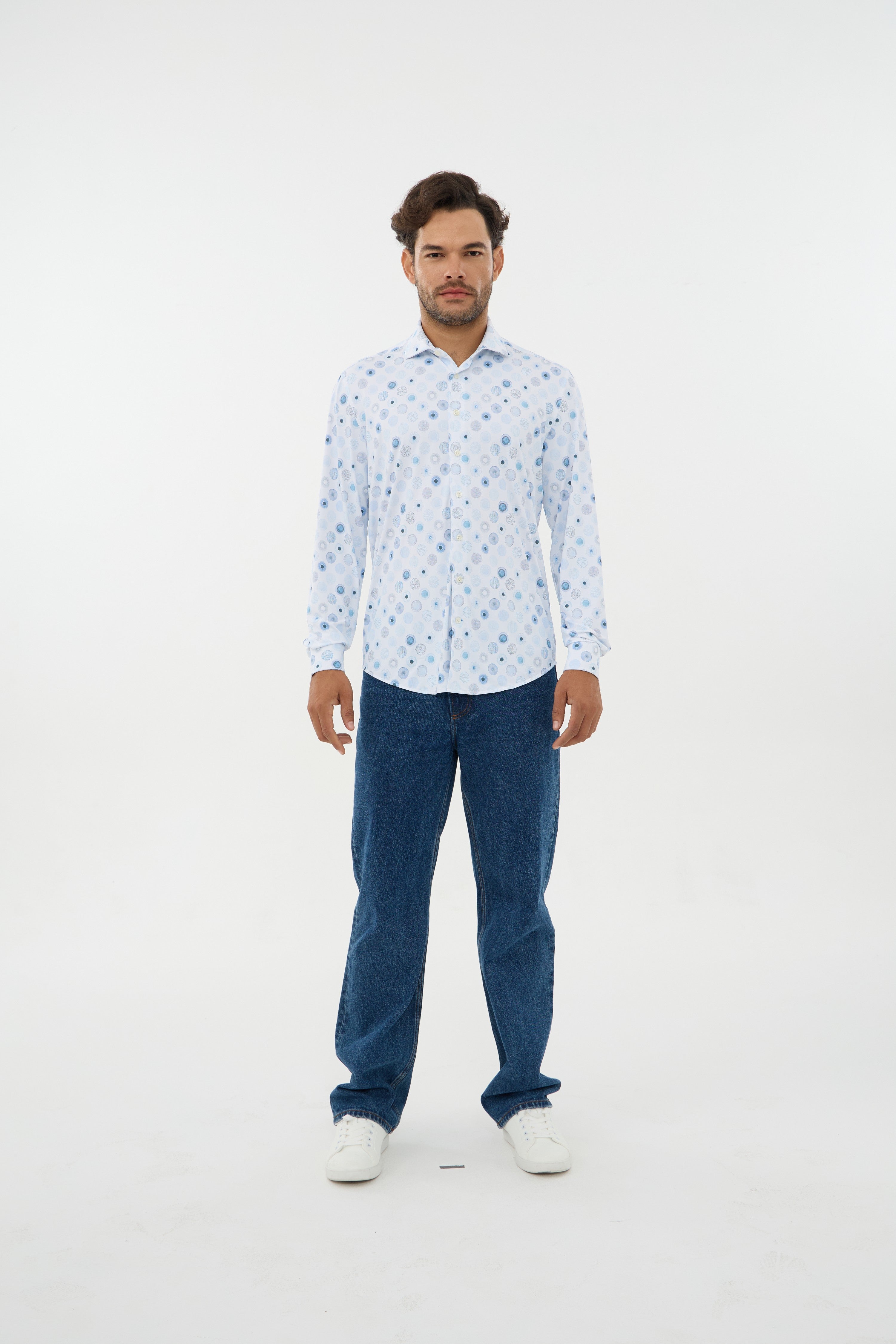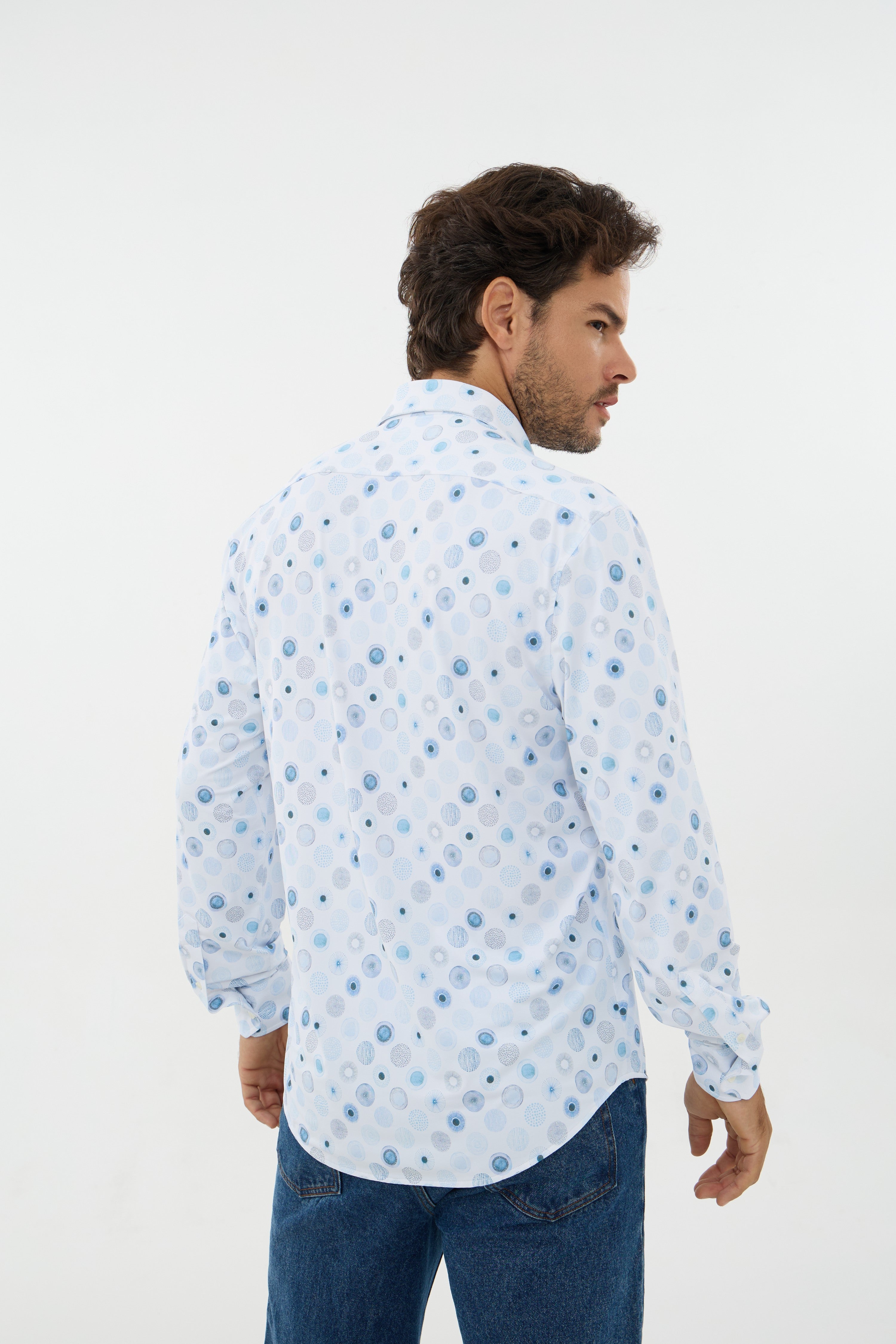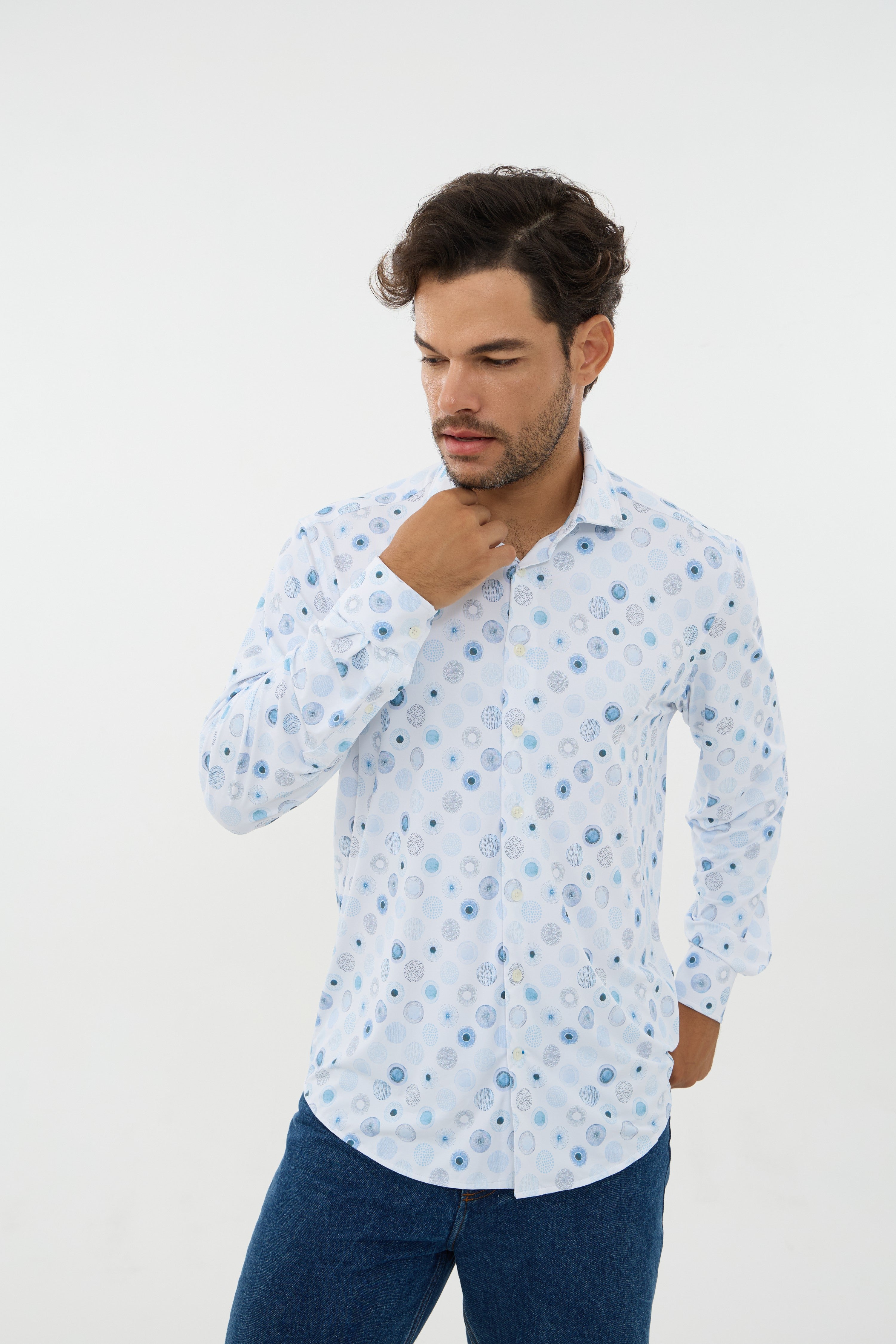 Leo Chevalier Iconic Stretch White with Multi Circle Print Shirt