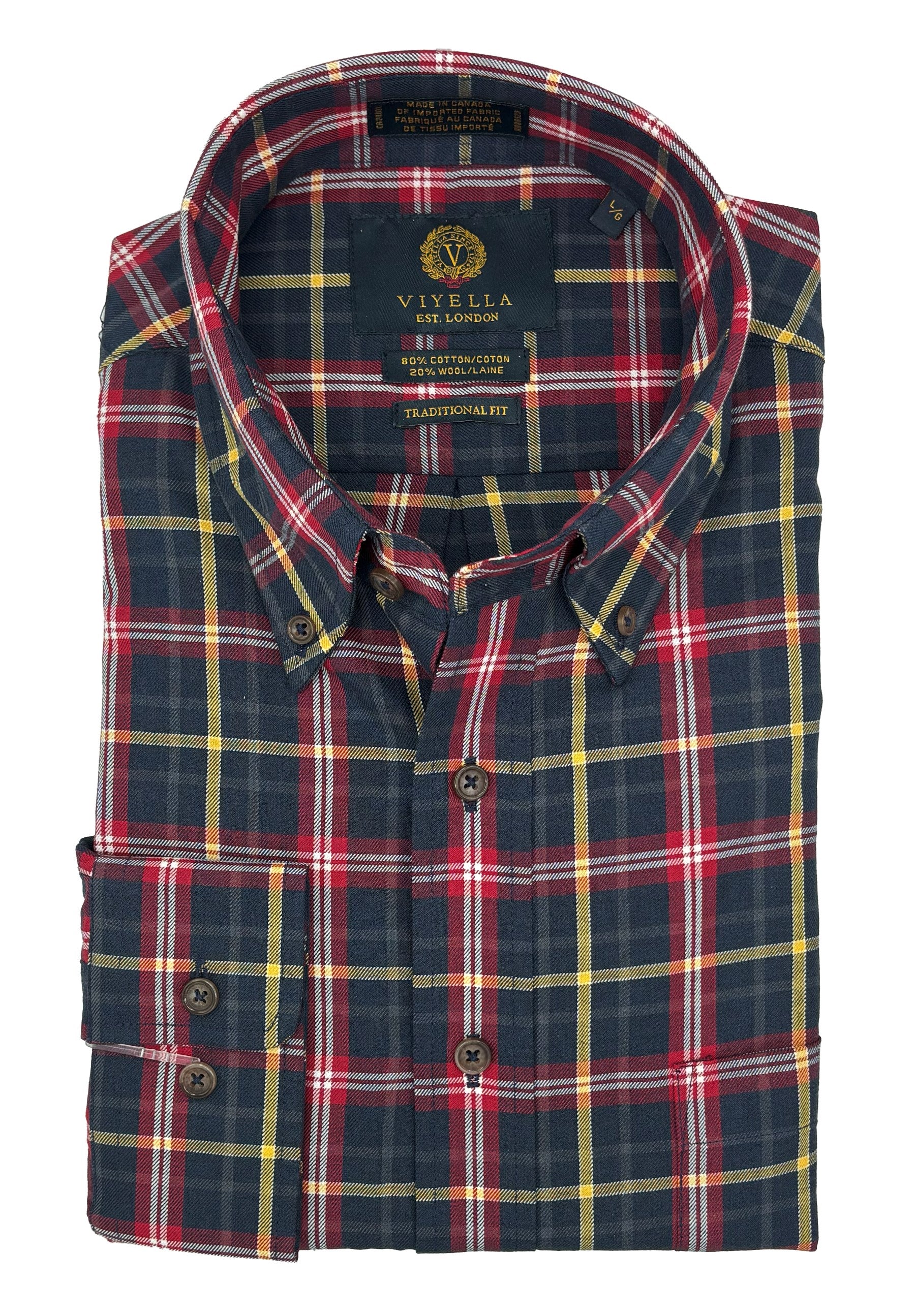 Since 1784, Viyella has manufactured the finest natural fabrics. This long-sleeved check pattern shirt is made in Canada with 80% cotton and 20% Merino Wool, allowing for warmth and breathability. The adjustable cuff, button down collar and chest pocket make this a versatile shirt for any occasion. Traditional Fit