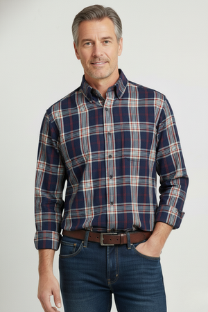 Leo Chevalier Brushed Cotton Red Plaid Shirt