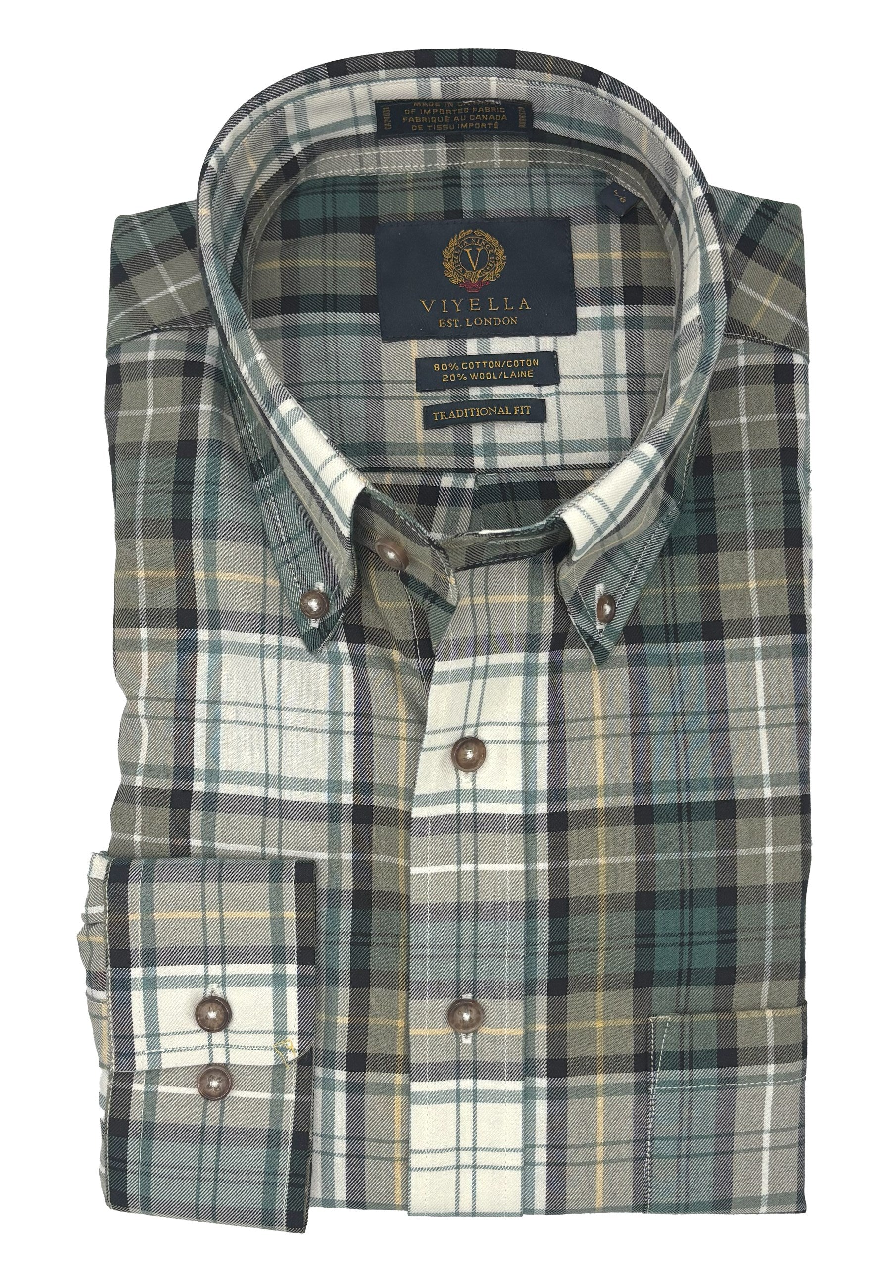 Since 1784, Viyella has manufactured the finest natural fabrics. This long-sleeved check pattern shirt is made in Canada with 80% cotton and 20% Merino Wool, allowing for warmth and breathability. The adjustable cuff, button down collar and chest pocket make this a versatile shirt for any occasion. Traditional Fit