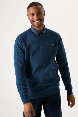Viyella 1/4 Zip Woodsman Sweater with Leather Trim