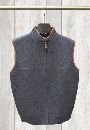 Viyella Full Zip Woodsman Sleeveless Sweater with Suede Trim
