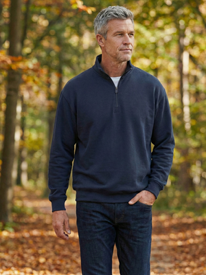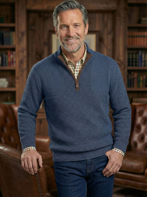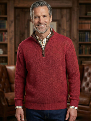 Viyella 1/4 Zip Woodsman Sweater with Leather Trim