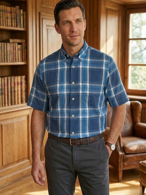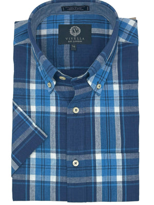 Viyella 100% Madras Cotton Denim Blue Shirt