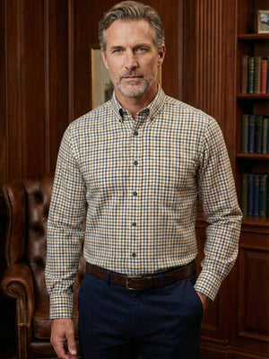 Viyella Navy Gold Made in Canada Plaid Shirt