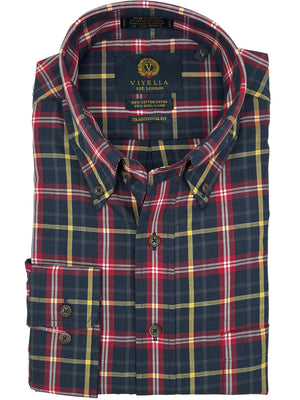 Viyella 100% Madras Cotton Red and Navy Shirt