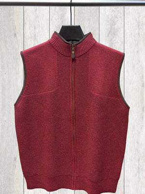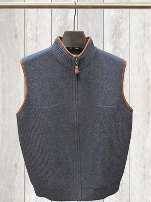 Viyella Full Zip Woodsman Sleeveless Sweater with Suede Trim