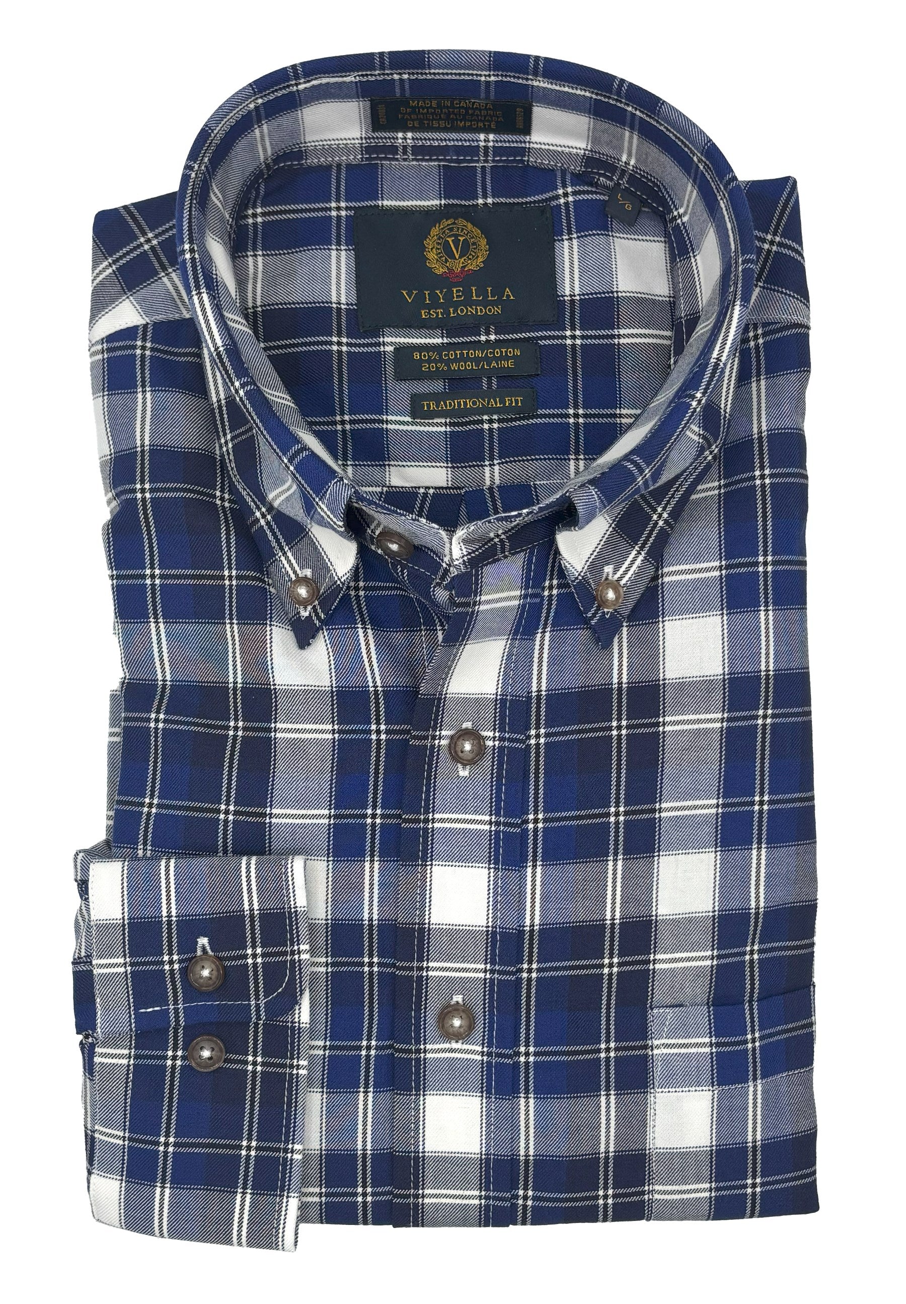 Chemise à carreaux bleue et marine Viyella, fabriquée au Canada