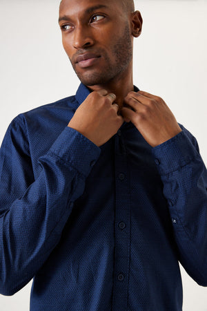Chemise Garcia bleu marine avec imprimé noir subtil
