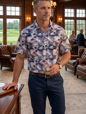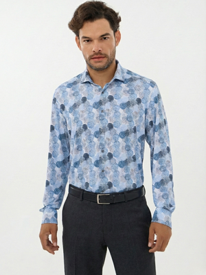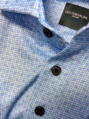 Chemise Leo Chevalier Iconic Stretch à imprimé bleu mélangé