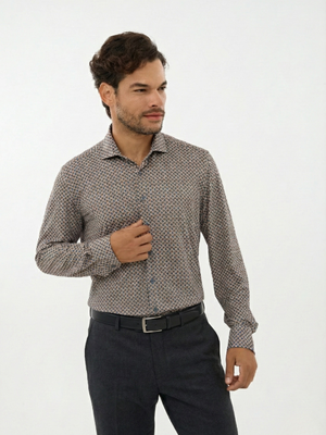 Chemise Leo Chevalier Iconic Stretch marron à imprimé losanges