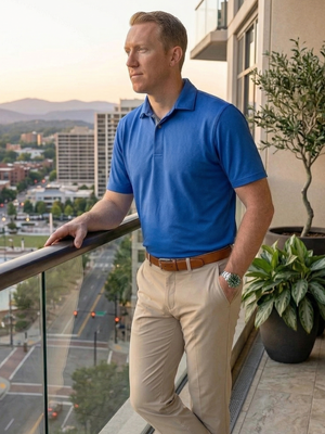T-shirt à col boutonné 100 % coton sans repassage pour homme