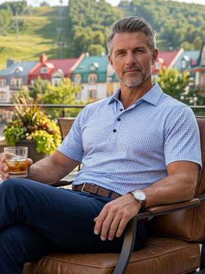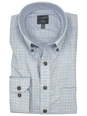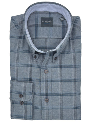 Chemise à carreaux bleu clair délavé Leo Chevalier sans repassage