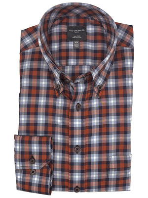 Chemise à carreaux orange brûlé Leo Chevalier sans repassage