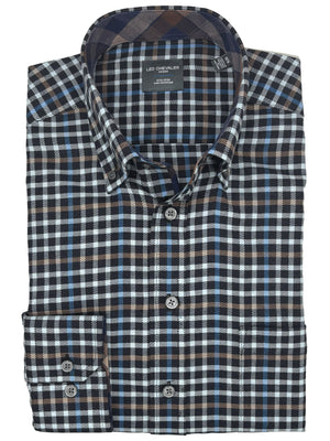 Chemise à carreaux bleus et marrons Leo Chevalier infroissable