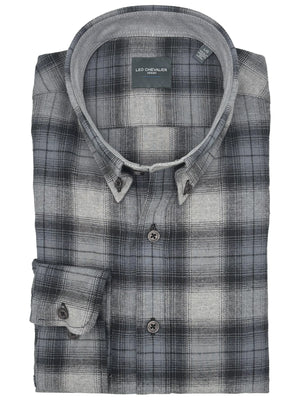 Chemise à carreaux gris en coton brossé Leo Chevalier
