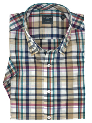 Chemise à carreaux multicolores Leo Chevalier sans repassage