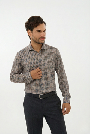Chemise Leo Chevalier à motif cachemire abstrait infroissable