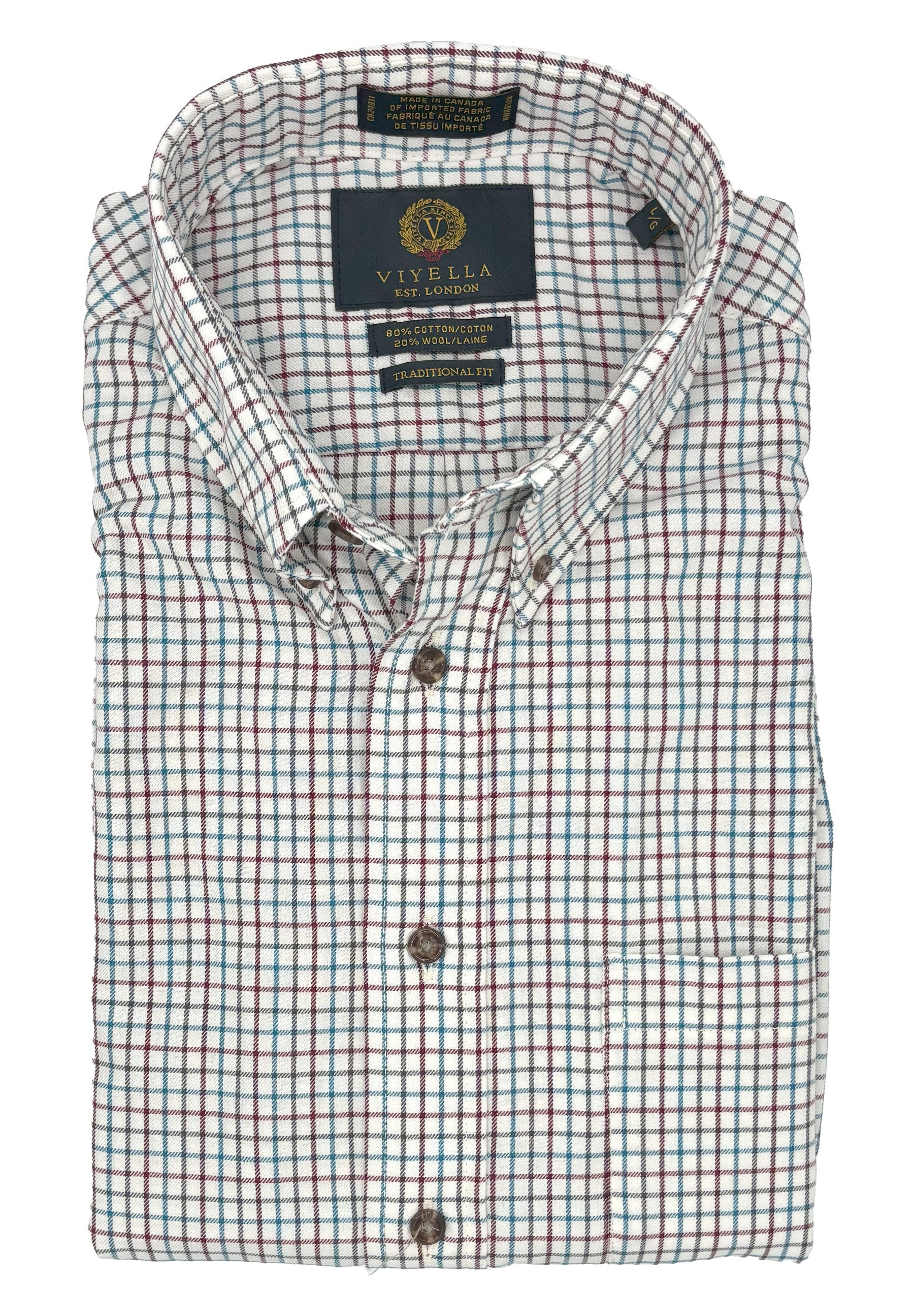 Depuis 1784, Viyella fabrique les plus beaux tissus naturels. Cette chemise à carreaux à manches longues est confectionnée au Canada avec 80 % de coton et 20 % de laine mérinos, pour un confort optimal et une excellente respirabilité. Ses poignets ajustables, son col boutonné et sa poche poitrine en font une chemise polyvalente, idéale en toute occasion. Coupe classique.