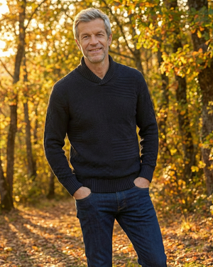 Pull polo basique en laine Baruffa de Viyella avec bordure en daim
